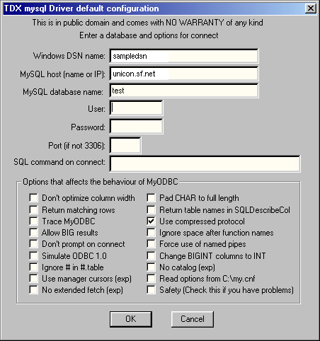 Figure 5: MyODBC configuration